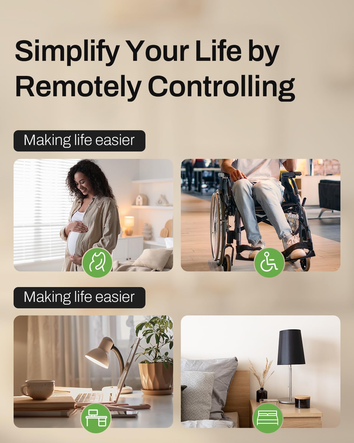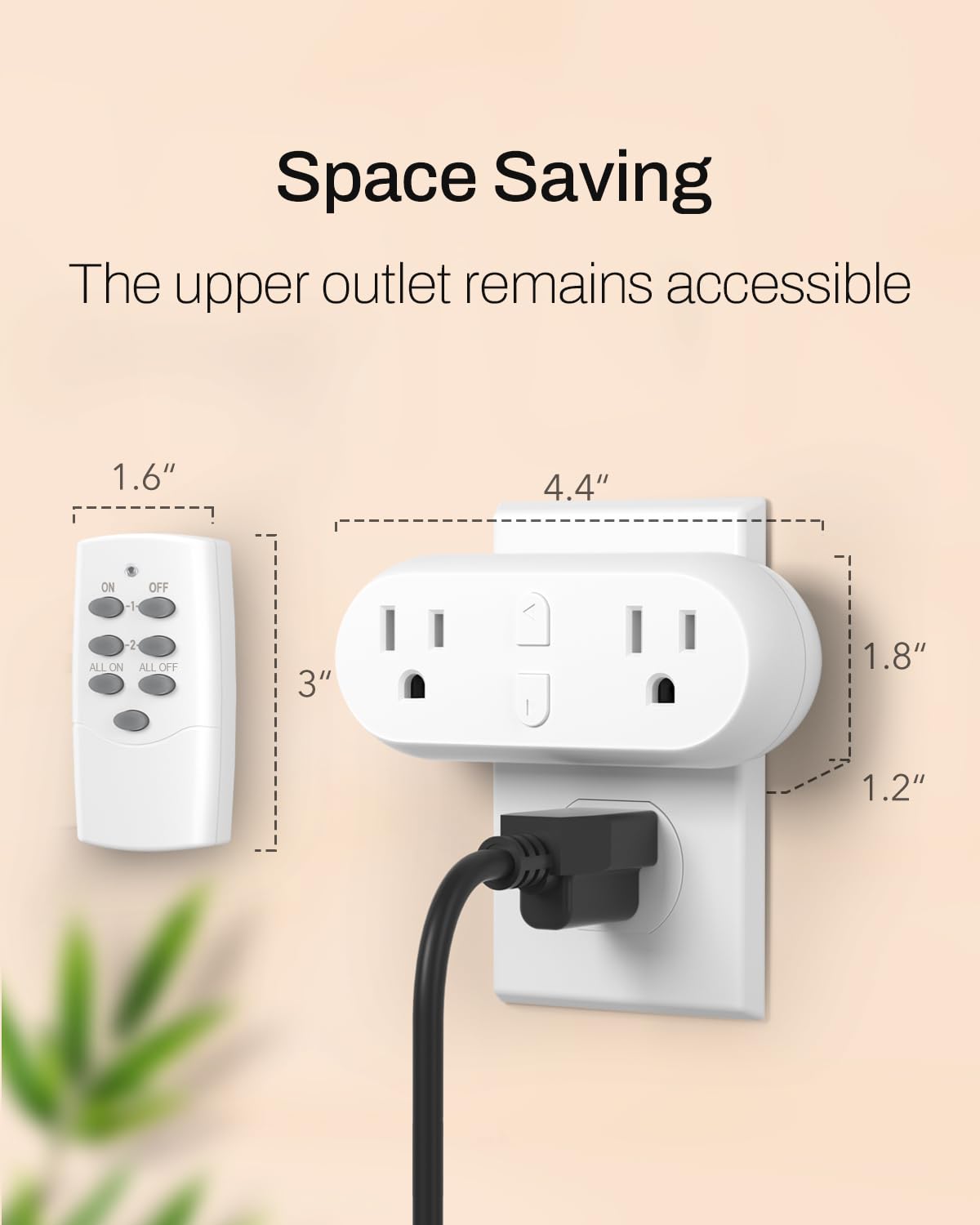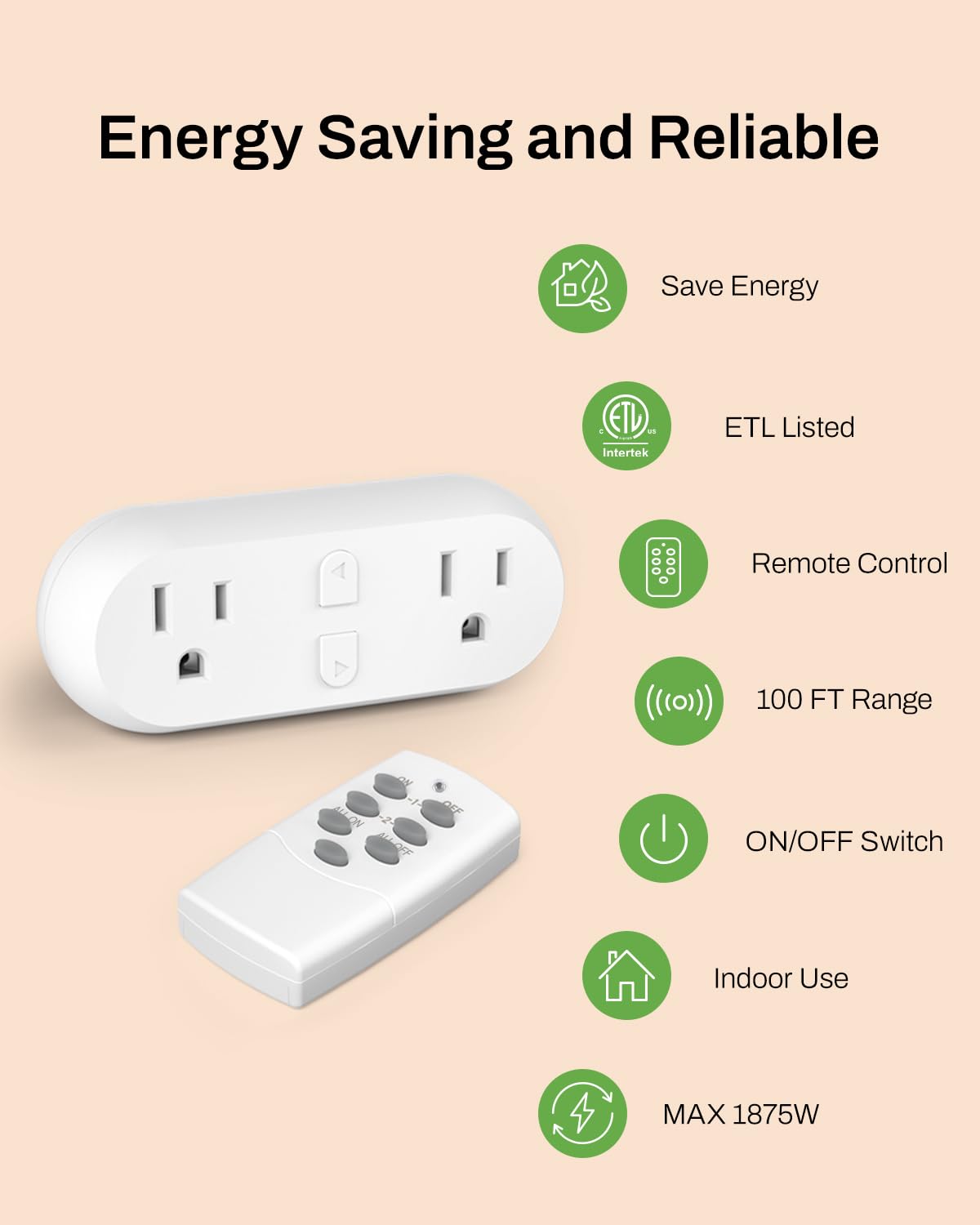 HBN Wireless Remote Control Outlet with 2 Individual Switch Control, Compact Design Sockets Plug Up to 100ft Remote Range, Battery Included, 15A/1875W, ETL Certified