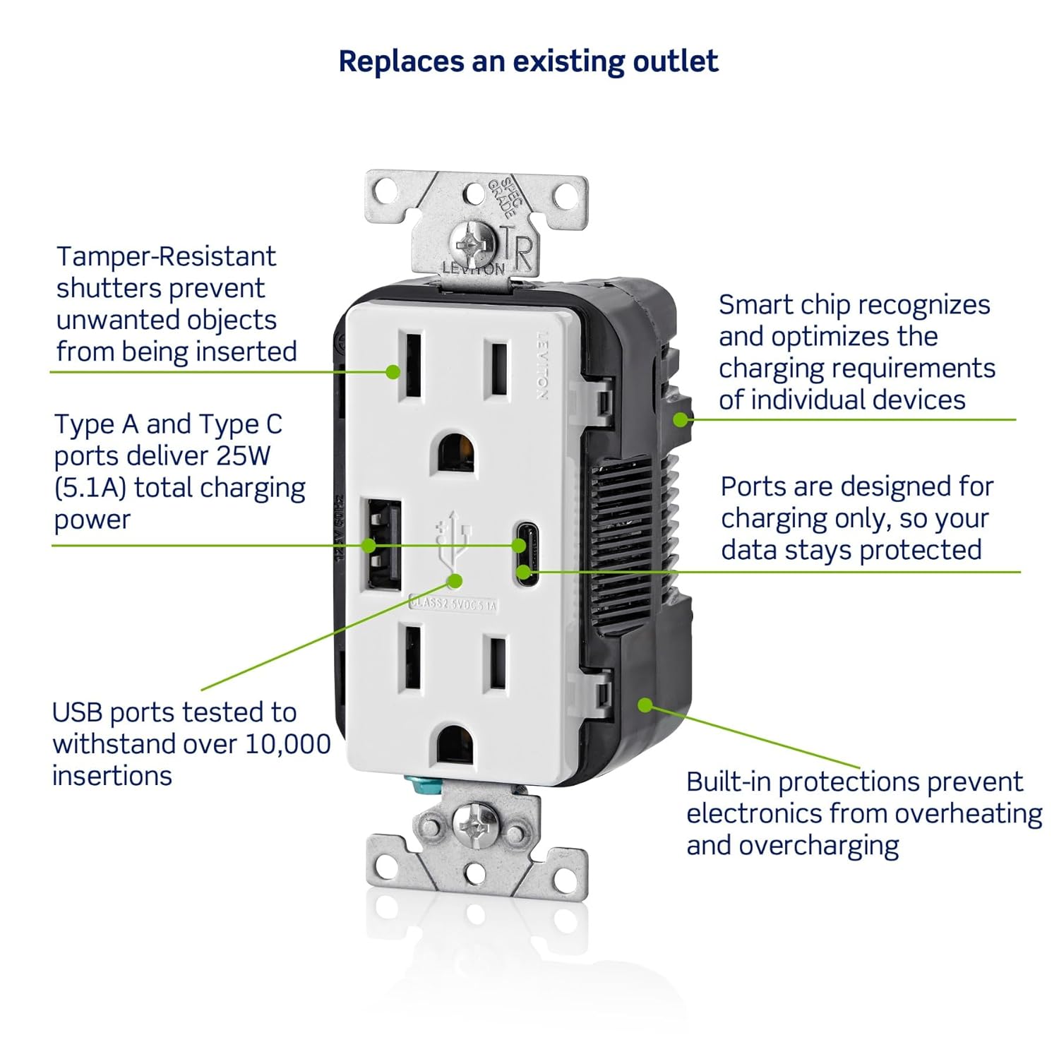 Leviton USB In-Wall Chargers can charge the latest tablets, smartphones, standard mobile