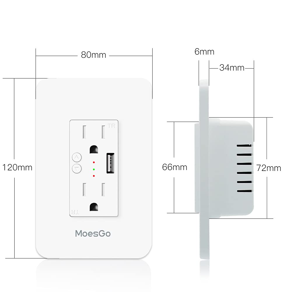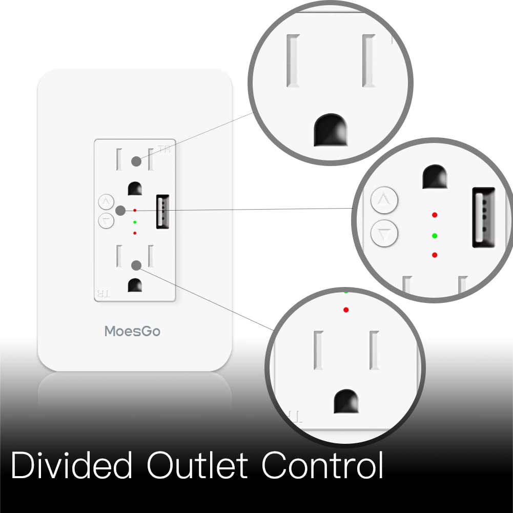 MoesGo Smart Power Wall Outlet with USB, WiFi Socket with 2 Plug outlets 15 Amp Divided Control, Smart Life/Tuya APP Remote Controller, ETL Certified, Work with Alexa and Google Home, No Hub Required