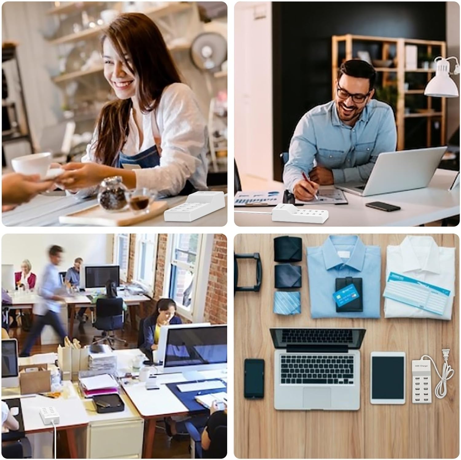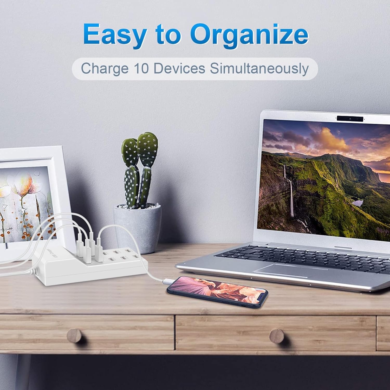 QIONMAR USB Wall Charger USB Charging Station for Multiple Devices USB Charger 10-Ports Power Hub Strip Smart Plug Charging Dock Charge Block Compatible with iPhone 15,iPod,Galaxy S Smart Phones