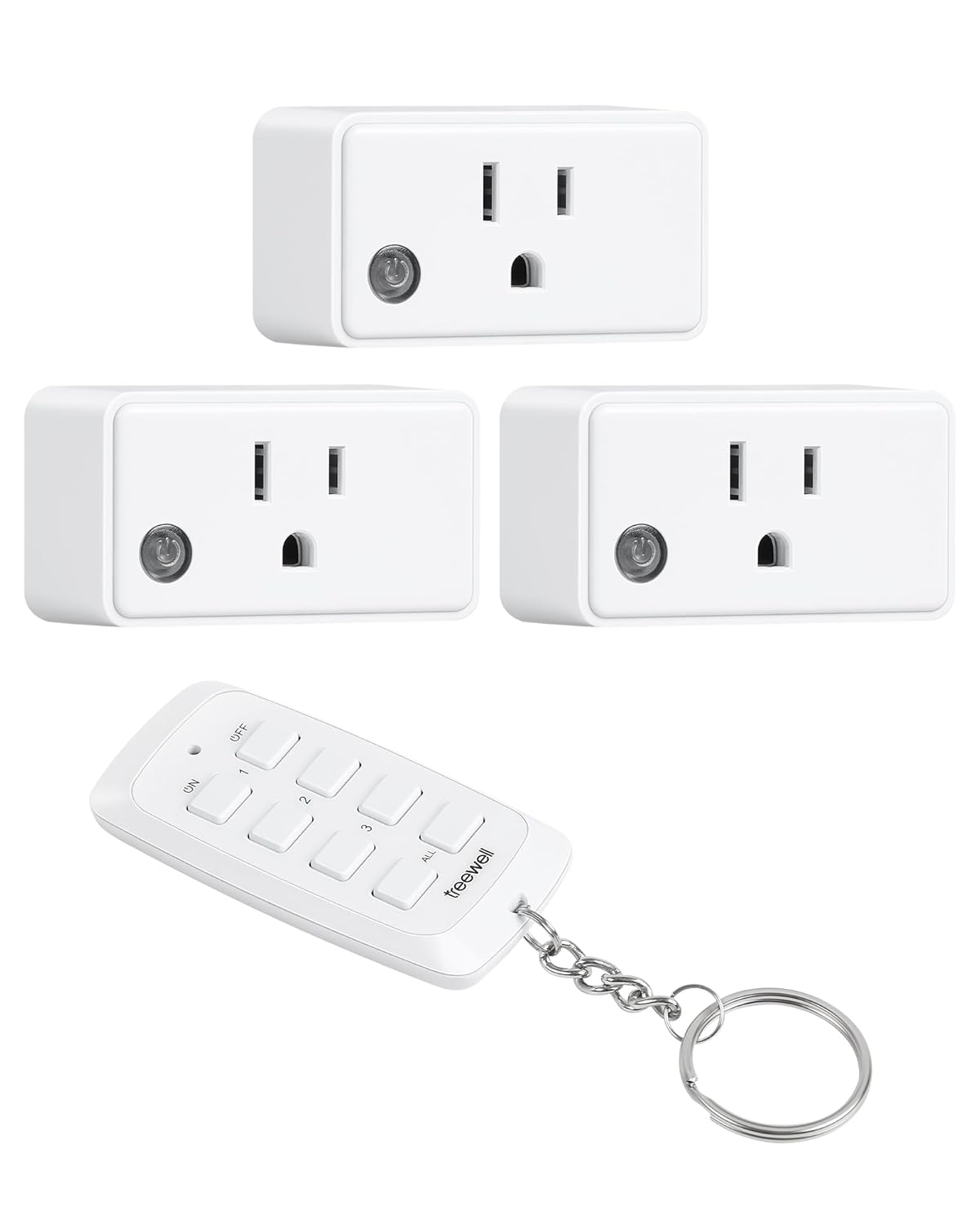 TREEWELL Remote Control Outlet, 200FT Long Range Wireless Light Switch, Mini Remote Outlet Plug, 15A/1875W High-Power for Lamps, Lights, Household Appliances, FCC & ETL Listed (5 Outlets + 2 Remotes)