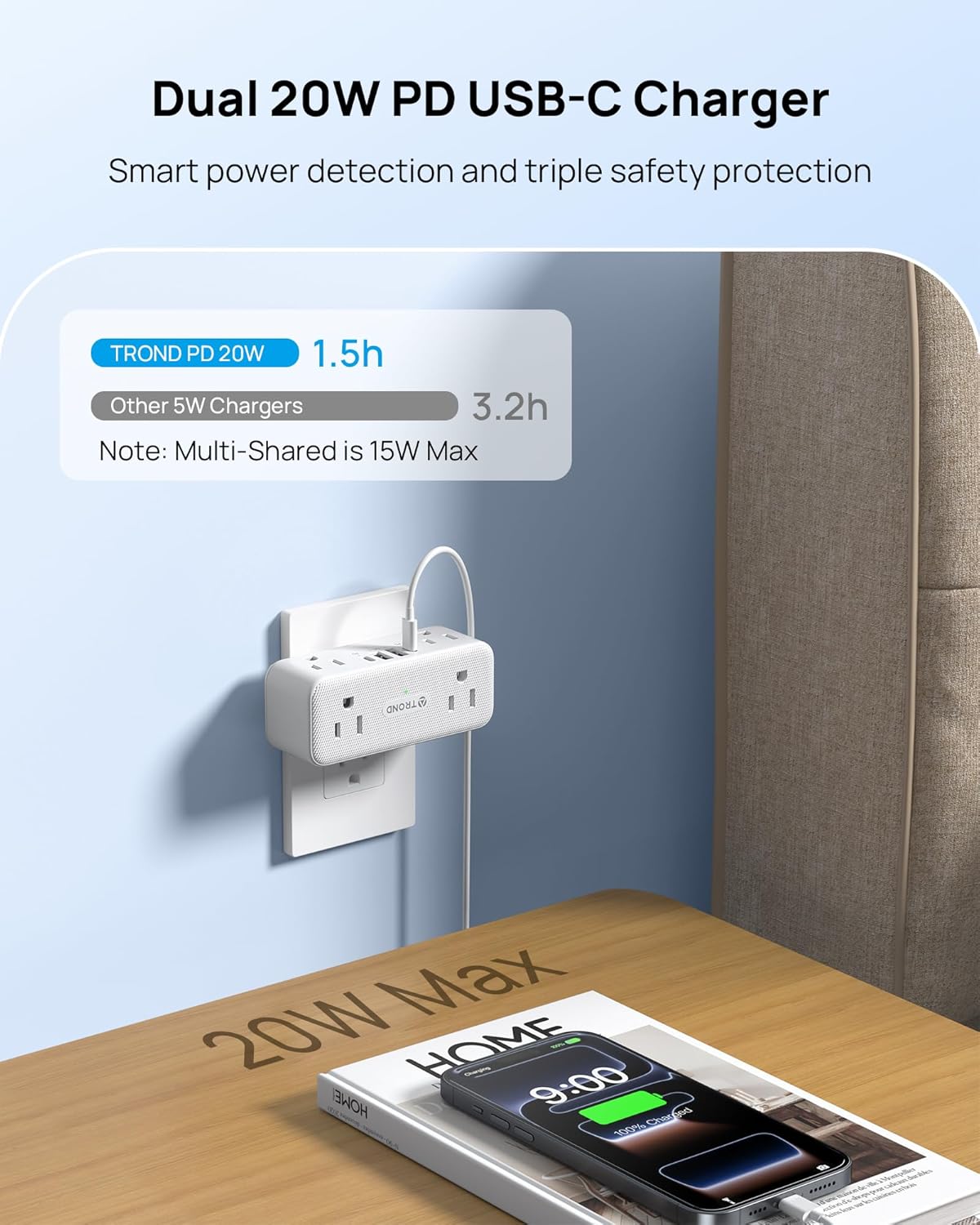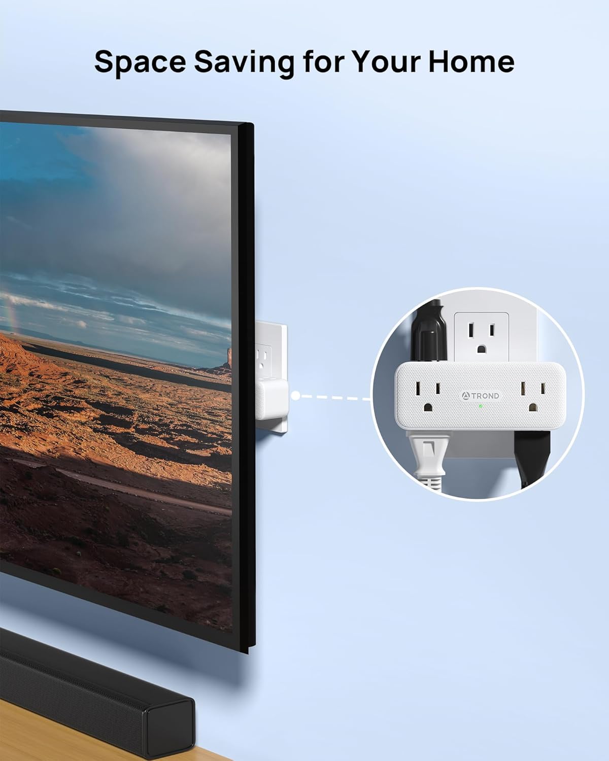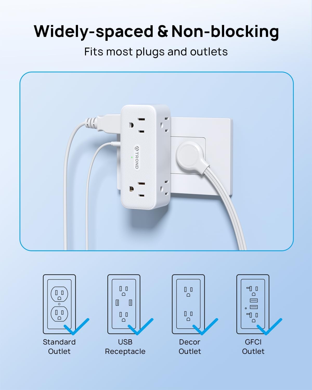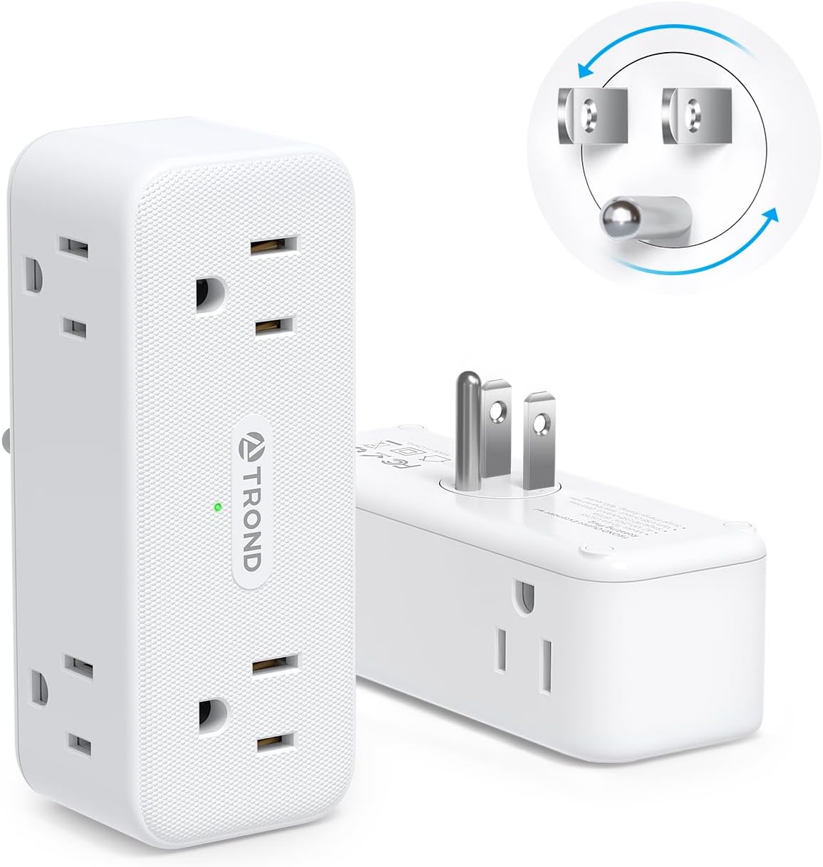 TROND Electrical Outlet Extender, 6 AC Outlet Splitter with 360° Rotating Plug, Multi Plug Adapter with PD 20W USB C, 2 USB-A & 2 USB-C, 3 Way Wall Extension Adapter for Home Office Travel Dorm