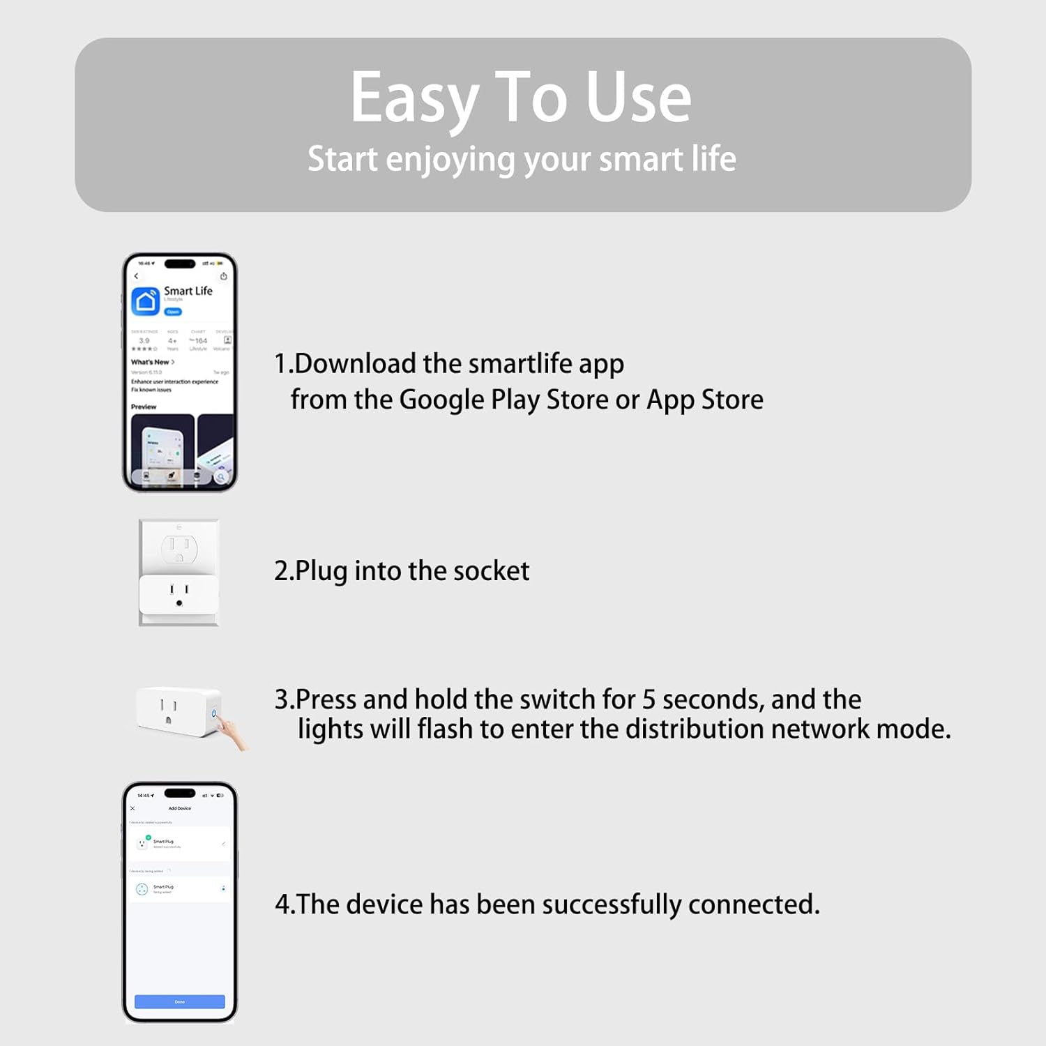 Tuya Smart Plug,Mini with Energy Monitoring,Pro Series 15A Plug,2.4G Wi-Fi Outlets Support Alexa, Google Assistant, Time Schedule,ETL & FCC Certified, 4 Pack
